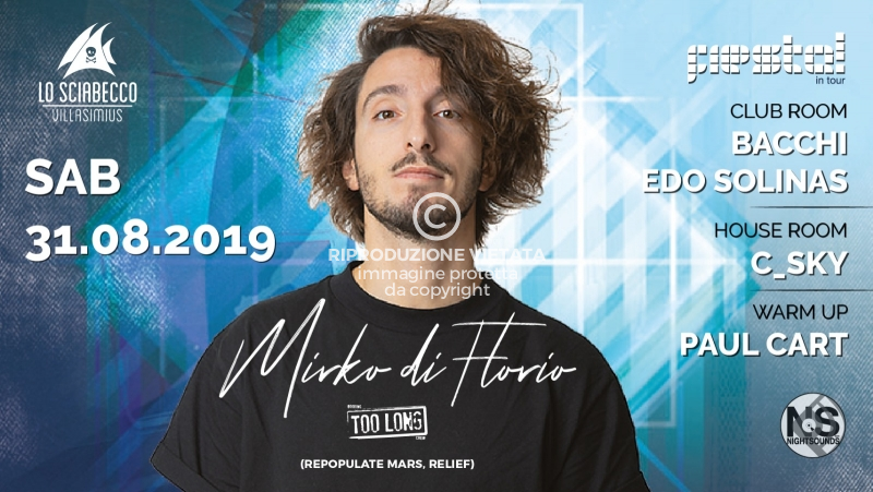 La formula sarà Sciabecco Summer Club + Fiesta! Il party che vi farà scatenare per tutta la notte ha come Special Guest MIRKO DI FLORIO (Repopulate Mars, Relief), dj e producer italiano che ha suonato nei club e nei festival house e techno più prestigiosi.